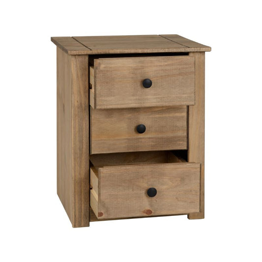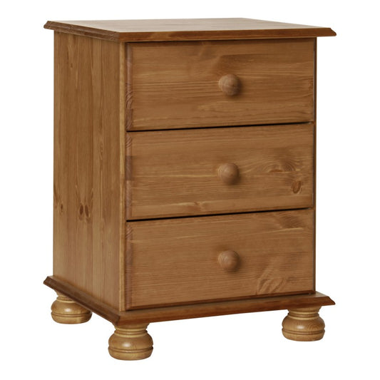 3 Draw Brown Waxed Pine Bedside Table by Corona